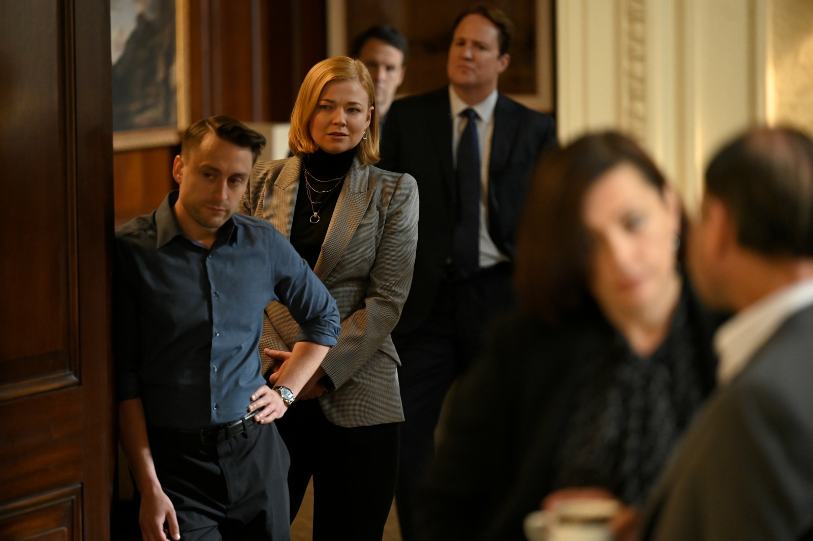 Once again the performances are what make Succession sing and here the trio of Kieran Culkin, Sarah Snook and Jeremy Strong dive deep into their characters to give off little hints on how their father’s death is affecting them and how they might align themselves moving forward. One of the strengths of this final season is giving Logan’s team a more prominent position and David Rasche, J. Smith-Cameron and Peter Friedman as Karl, Gerri and Frank respectively are up to the challenge, formulating their own plans for Waystar’s future in tandem with Tom.