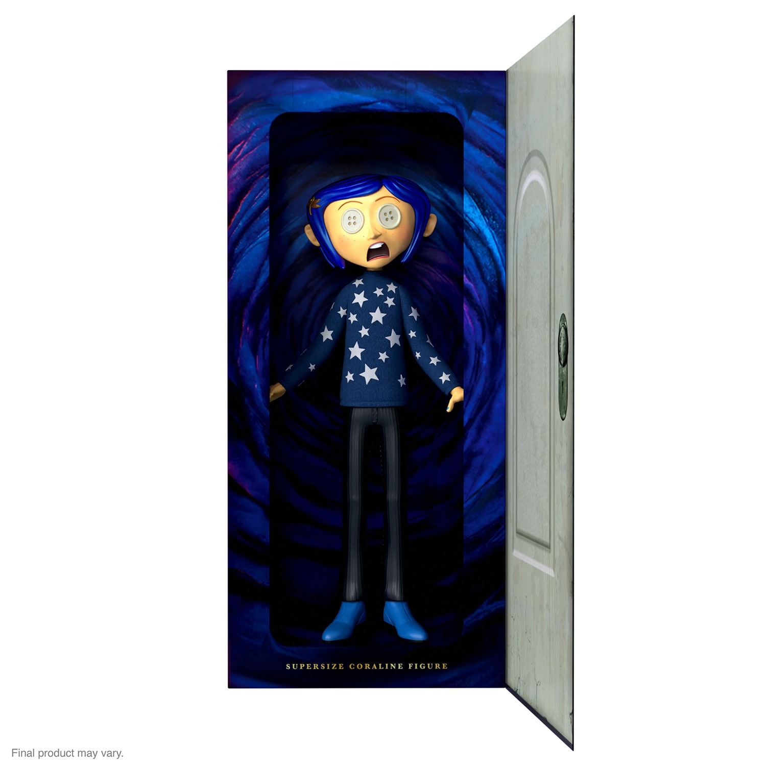 Coinciding with the theatrical re-release of Coraline in celebration of the beloved animated film’s 15th anniversary, Sideshow and Super7 have unveiled the Button Eyes Coraline SuperSize vinyl figure which is available to pre-order now, priced at $295; check it out here…