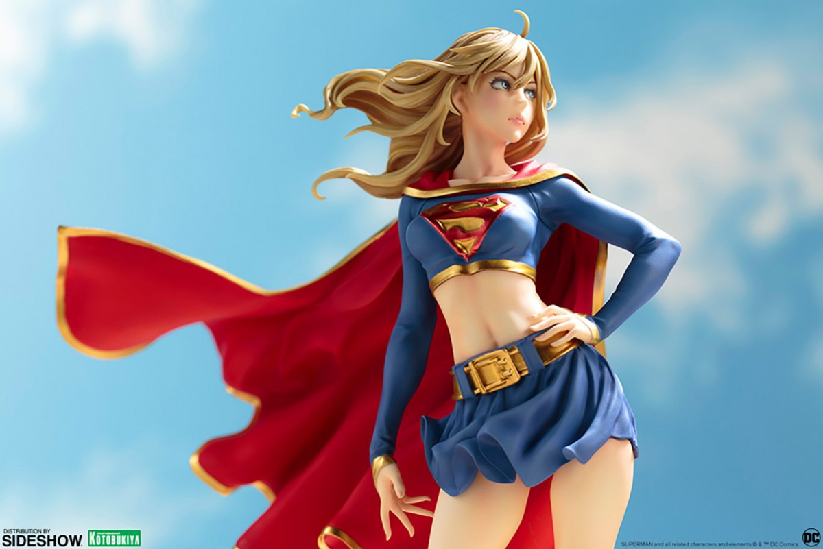Sideshow and Kotobukiya present the Supergirl Returns 1:7 Bishoujo Statue! A completely new design illustrated by Shunya Yamashita this heroine from DC Comics! Supergirl is faithfully replicated from Shunya’s illustration into a highly detailed sculpt by ke(comaccow). Supergirl poses confidently with her hair and cape flowing along with the wind while showing off her lean muscles. Due to the popular demand, Supergirl returns to Kotobukiya’s famous Bishoujo series! She is sculpted in detail from her natural blonde hair, serious yet cute expression, to the creases in her cape and skirt.