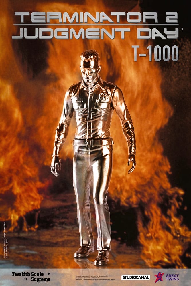 Great Twins has revealed promotional images for its 1/12th scale T-1000 action figure which is based on the likeness of Robert Patrick in James Cameron’s 1991 sci-fi action classic Terminator 2: Judgment Day; take a look here…