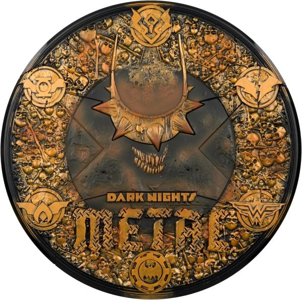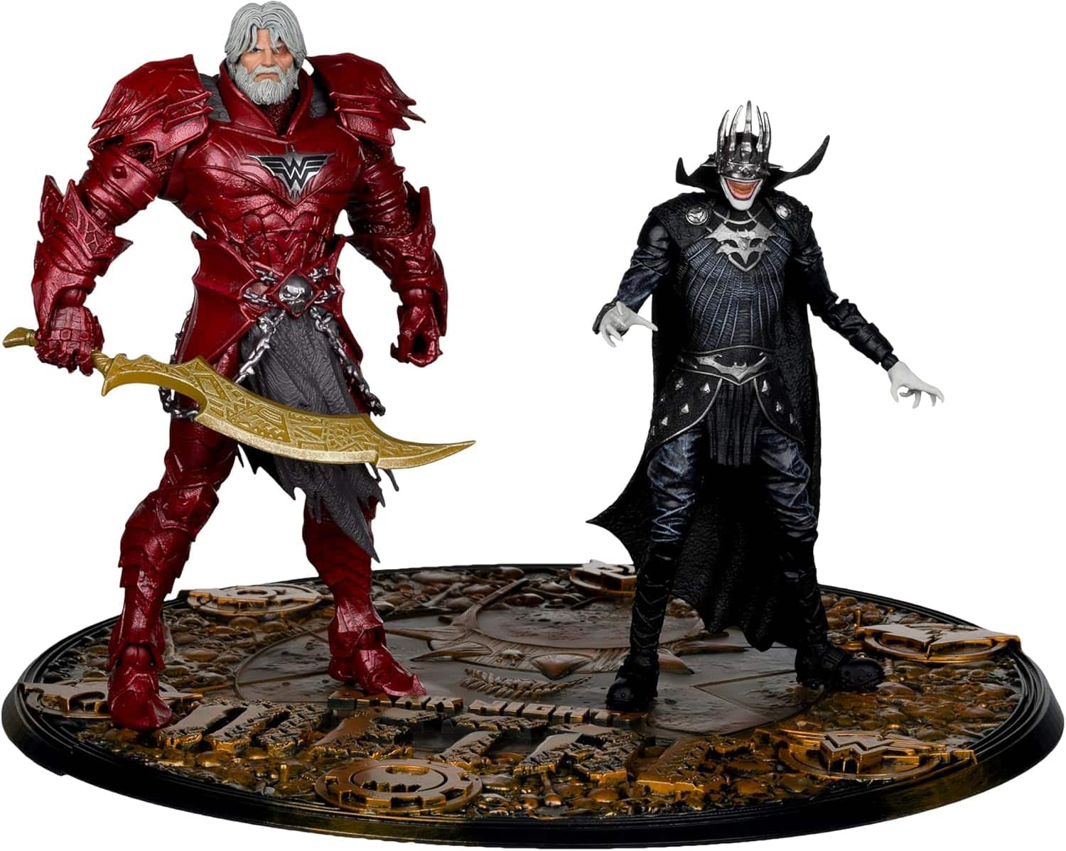 “THE BATMAN WHO LAUGHS He is Batman’s greatest nightmare come to literal life. The Batman Who Laughs is Bruce Wayne from a world in the Dark Multiverse where he has been infected with The Joker’s nanotoxin. Possessing a mind capable of thinking like both Batman and his greatest nemesis the Batman Who Laughs has risen to a higher power than any mortal before him. THE MERCILESS From Earth -12 comes the bloodthirsty Merciless, a nightmarish fusion of Batman and Ares. Clad in blazing armor and wielding the God Killer sword, this member of the Dark Knights is a supremely powerful warmonger, taking all of the best tactical skills of Batman and pairing them with the might of Ares.”