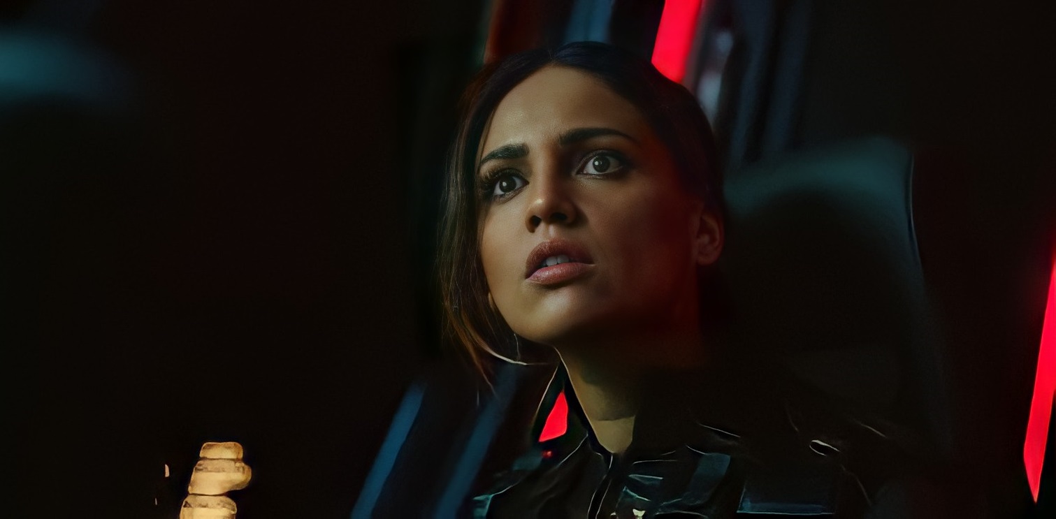 The movie is notable for Eiza González leading in the role of the amnesiac Riya Ortiz, who wakes up in a space station with no memory of what’s going on. She commands the movie right from the start with her magnetic presence as long as you can forgive her character being significantly dolled up as eye candy. Thankfully, González brings enough commitment to her role and pairs well with Aaron Paul, who plays the mysterious guy in a spacesuit, Brion.