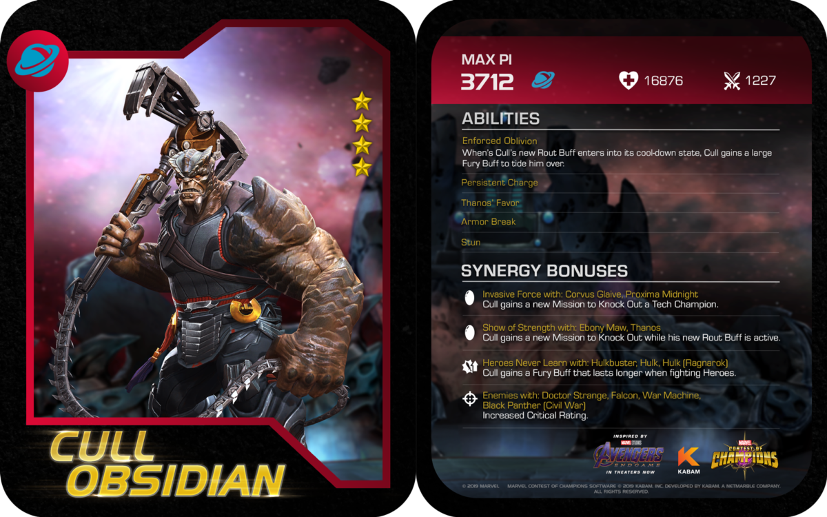 Kabam has unveiled its latest Avengers: Endgame update for the mobile fighting game Marvel Contest of Champions, which introduces the brute of the Black Order, Cull Obsidian. Check out his bio, and stats and abilities here…