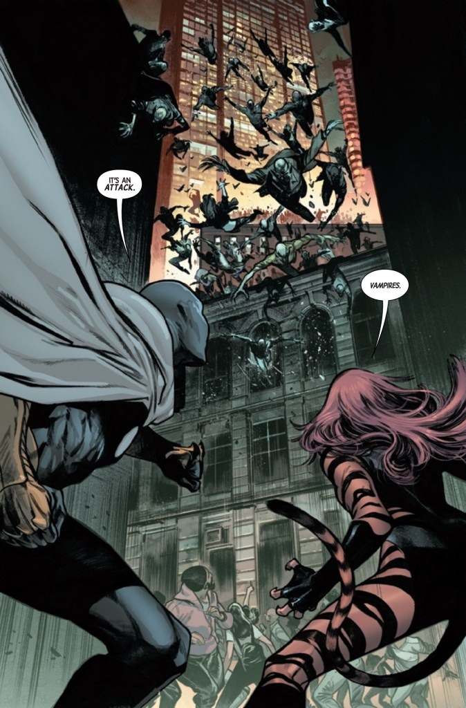 The skies have gone dark, the sun hiding its face from the carnage to come. The children of the night, the vampires, have risen from the dark and hidden places of the world as one to drown the Marvel Universe in blood. Earth’s final night has fallen – can even the heroes of this doomed world stem the tide of blood that is to come? Join the AVENGERS, BLADE, BLOODLINE, SPIDER-MAN, HUNTER’S MOON, TIGRA, DOCTOR STRANGE and CLEA as the dance of death begins in BLOOD HUNT #1!