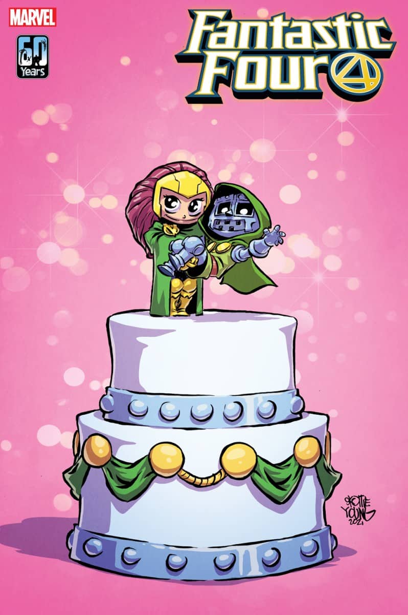 Wedding bells will ringing in the pages of Fantastic Four #32 this May, and to celebrate the hotly-anticipated new story arc, Marvel has unveiled variant covers for ‘The Bride of Doom’ from artists Peach Momoko, Ron Lim, Valerio Schiti, Skottie Young and a Hidden Gem Variant with Jack Kirby artwork. Check them out here alongside Mark Brooks’ main cover…
