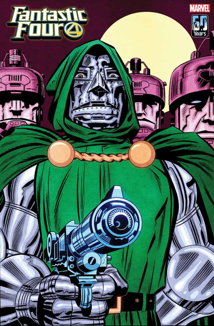 The HUMAN TORCH’s love life is changed forever when he must choose between his soulmate and his ex-wife… And is Johnny Storm’s first heartbreak, CRYSTAL, back in the book?! This is all too much! Fortunately, there is also a lot of punching, hitting and clobbering going on! All this and an ominous decree by DOCTOR DOOM! PLUS: A second tale in which Reed Richards duels Doctor Doom for the strangest prize imaginable!