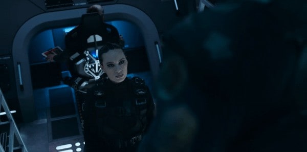 Perhaps the biggest development to come out of ‘Tribes’ though was Marco Inaros’ growing support amongst the number of Belter factions. It is support, however, that may not be entirely voluntary as Marcos is essentially giving them little to no choice to do so, a fact spelt out in a very threatening manner when Drummer and her crew were debating the pros and cons and realized the corner they had been placed in. Drummer’s back and forth with Marco over the severity of his actions, as well the personal losses he dealt to Drummer with the deaths of both Ashford and Johnson, was one of the best scenes of the episode. Cara Gee and Keon Alexander also share nice chemistry as the opposing leaders with Alexander balance of charisma and menace. For all Marco’s charisma, though, it was very interesting for the show to point out the other dangers he’s placed upon Belters with the loss of their most significant source of food from Earth. He can have all the military ships from Mars he wants, but it won’t help him get food and water to the people who need it. It only shows how, despite Marco’s plans for other food sources and his admittance that the next few years will be hard on that front, he is really only interested in growing his own power and influence and bettering things for himself rather than all Belters, a fact Naomi tries in vain once again to get through to Filip.