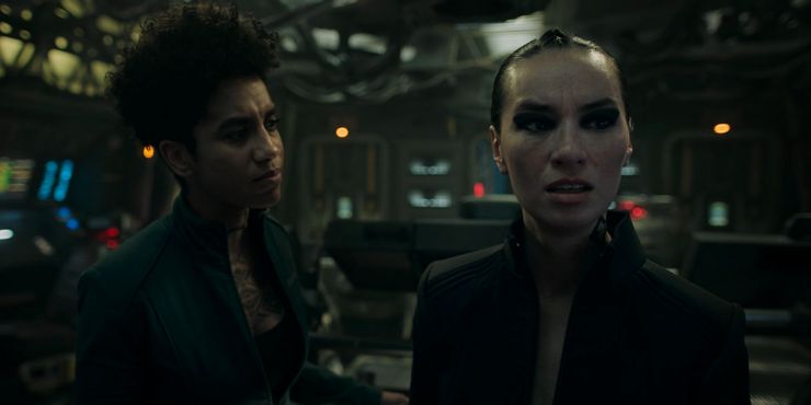 The character dynamics were on full display whether it was between Avasarala and Bobbie or Holden, Amos and Bobbie or Naomi and Drummer. In the case of Drummer, Cara Gee once again did an excellent job showcasing Drummer’s conflicting emotions as she balanced the line between cold captain, bitter Belter and angry friend. Much like Dominique Tipper last season, Gee has bene this year’s MVP for her powerhouse scenes. The reunion between Drummer and Naomi was quite an emotional one with Gee and Tipper pulling out all the stops for it. There’s always been an undercurrent of romantic/sexual tension between them, at least on Drummer’s part (something The Expanse webisodes this season also brought up), and Gee and Tipper perfectly play off that with Drummer’s distant act, calling Naomi by her last name and accusing her of being a lackey for the Inners.