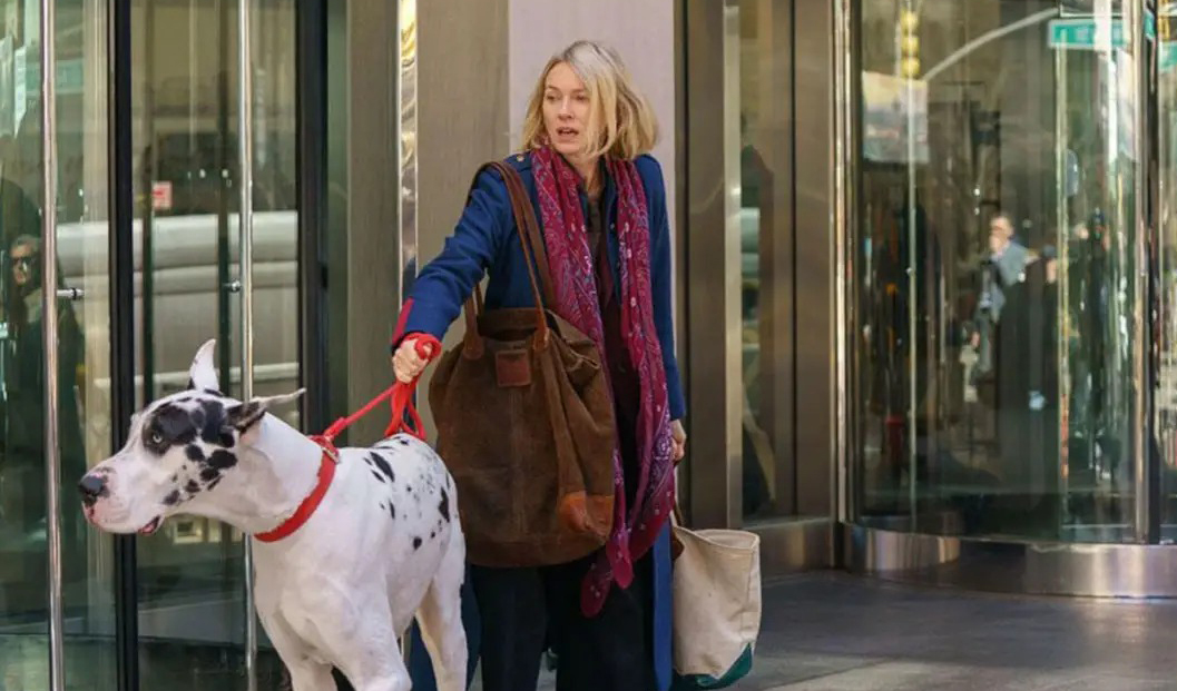 If you’re coming for the former, temper your expectations regarding screen time. Instead, this is primarily a story about a long-time friend and past significant other, Iris (Naomi Watts), entrusted from beyond the grave to look after that dog, developing an emotional bond that also functions as a means for processing grief, especially since the canine has taken on similar traits of his now deceased master such as captivation for the written word and relaxation through classical music.