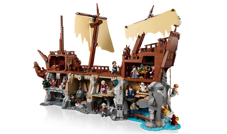 • Iconic scenes – Build the Fratellis’ hideaway and basement, Willy’s treasure room and more cave scenes on one side of the model, and Inferno pirate ship ruins on the other