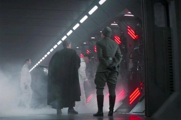 Weathers also discussed the episode’s big reveal, that Gideon and Dr. Pershing are conducting twisted experiments by trying to inject Midi-chlorian-rich blood into test subjects to make them force-sensitive (which is why they want Baby Yoda). Din and friends come across some failed experiments in test tubes, reminding a lot of viewers of Palpatine’s efforts to clone himself in Episode IX and his creation of Snoke.