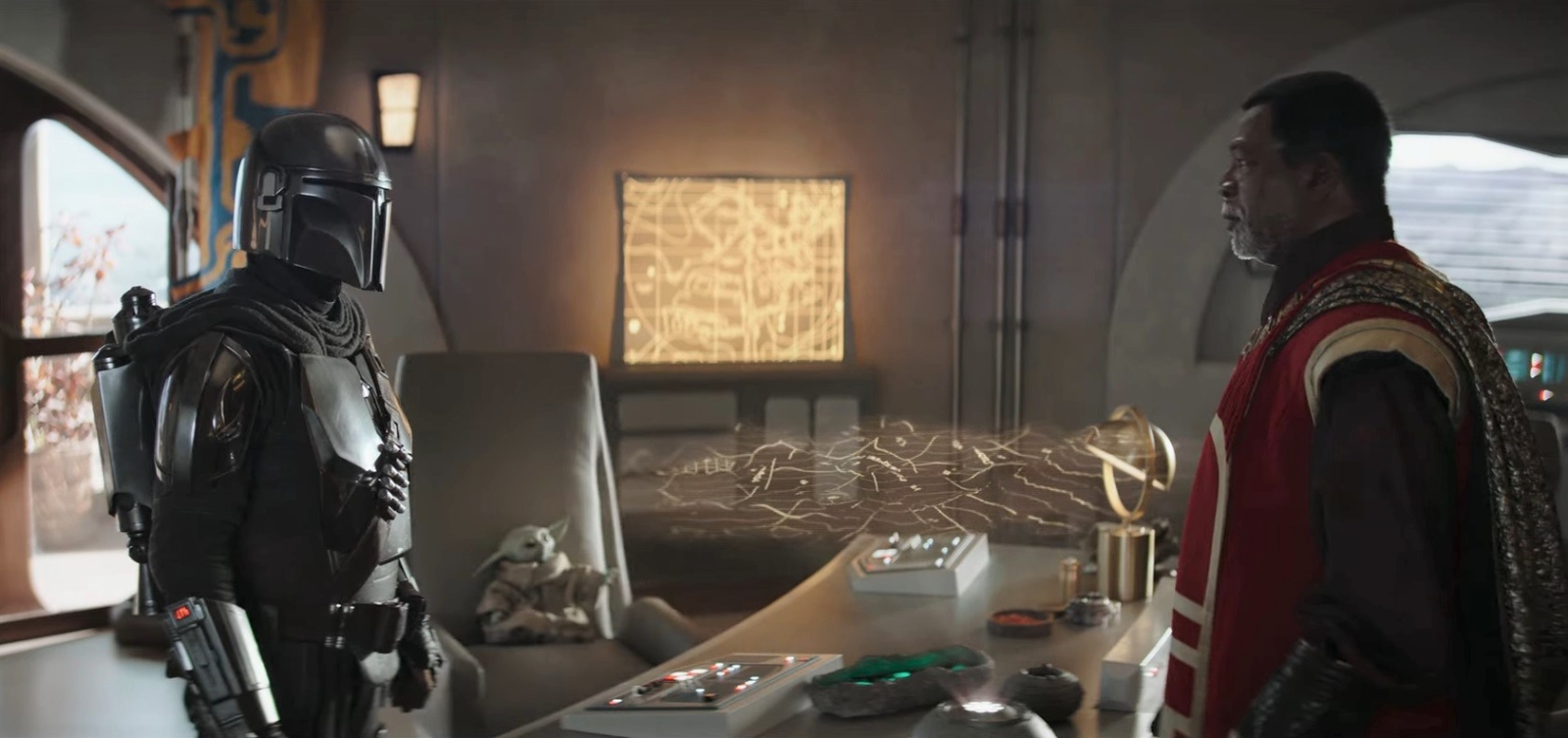 Directing was The Mandalorian veteran Rick Famuyiwa and he did quite a nice job. ‘The Apostate’ was well-paced, the space fight in the asteroids was solid with Din performing some Batman-like moves again as he appeared out of nowhere to take down the pirates. The few elements of humour were well balanced with the seriousness, like Din fitting in Babu Frik’s tiny workplace or the easy-to-miss detail of a couple small droids carrying Greef’s flowing cape so it wouldn’t drag on the ground.