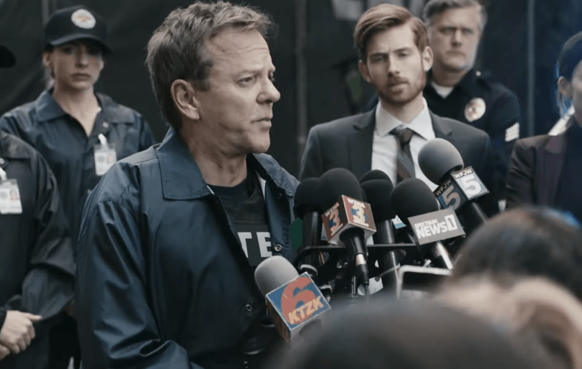 “Wrongfully—and very publicly—accused, Mike must prove his innocence by uncovering the real perpetrator, before the legendary cop, Detective Clay Bryce (Sutherland), heading the investigation can apprehend him. With the city in a state of panic and misinformation traveling at the speed of social media, Mike’s life and family hang in the balance as he becomes… The Fugitive.”
