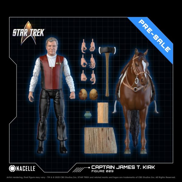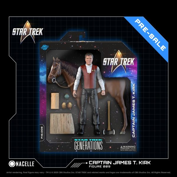 Venture into the past to encounter this Captain James T. Kirk action figure, right from his out-of-time experience in “Star Trek: Generations.” Following an accident aboard the U.S.S. Enterprise-B, Captain Kirk was transported into another realm – and this 1/10-scale, articulated figure comes complete with all the elements of his time in the mysterious Nexus: an axe and stump for chopping firewood outside of his mountaintop cabin, a pair of eggs and a jar of dill weed for a tasty breakfast, and a trusty horse for galloping through the fields.
