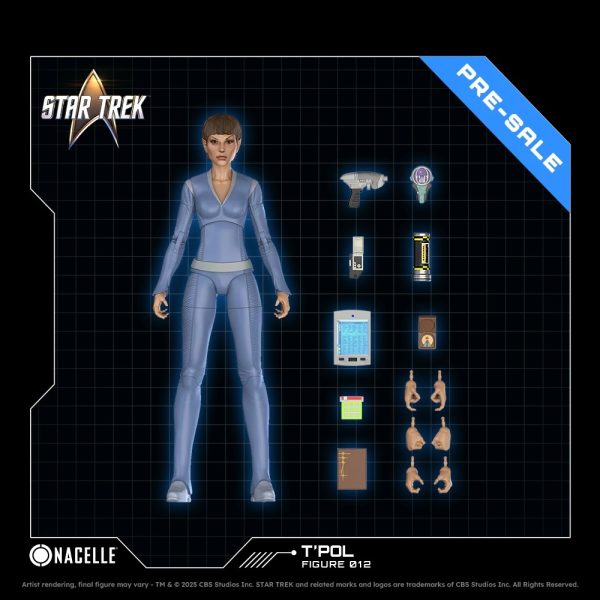At the end of history lies the undiscovered country — where traitorous Lieutenant Valeris is waiting for you! Captain Spock’s young Vulcan protégé arrives as an articulated 1/10-scale action figure, complete with several artifacts from her mission on the U.S.S. Enterprise-A: a Starfleet phaser and communicator, the ornate Vulcan goblet from Spock’s quarters, an incriminating gravity boot used in the assassination of Klingon Chancellor Gorkon… and of course, a pot of mashed potatoes for target practice.