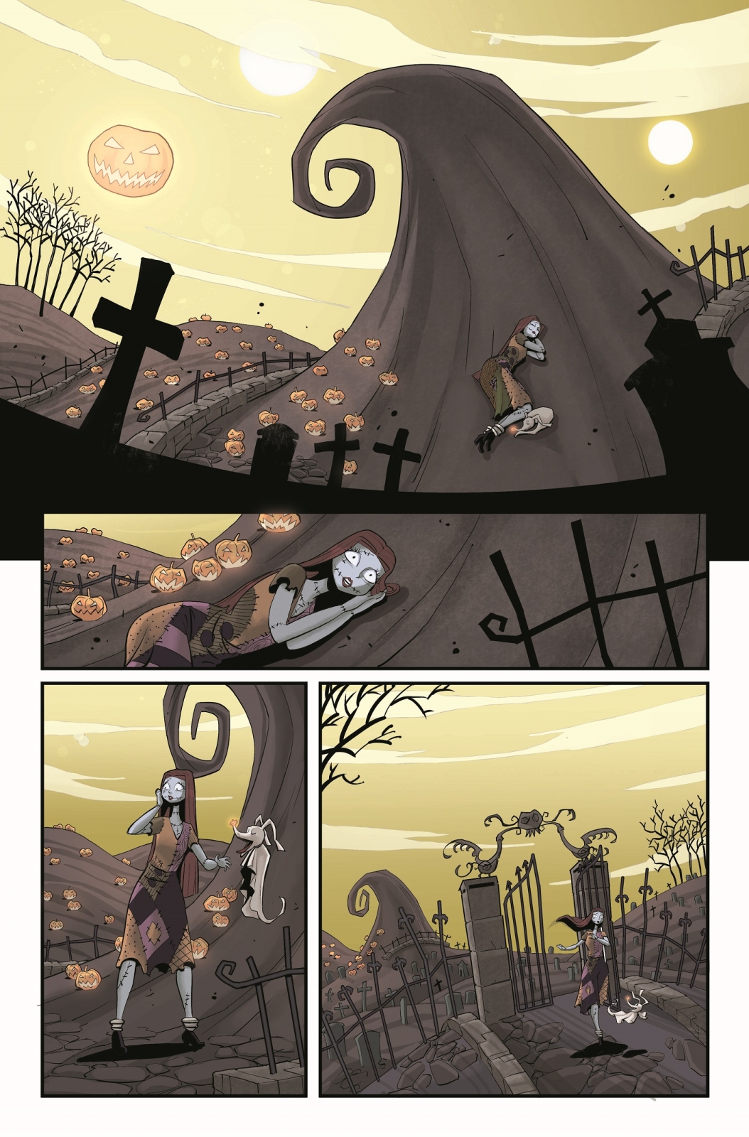 After escaping from Dr. Finkelstein and marrying her true love, Jack, Sally has become the realm’s official Pumpkin Queen. But as much as she adores her skeletal husband, the spotlight of popular attention and the weight of her many new royal obligations have left Sally wondering if she might have actually just traded one form of captivity for another. To make matters worse, when Sally and Zero discover a hidden doorway leading to the previously unknown Dream Town, the resulting cascade of calamities threatens not only her new position as Pumpkin Queen, but also the very foundations of her world!