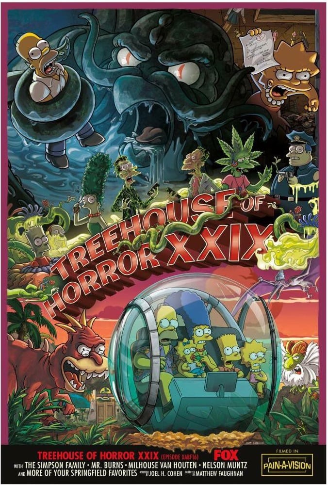 “Homer wins an oyster-eating contest against the mythical Cthulhu, Springfield is overrun by plant body-snatchers, Lisa finally snaps, and Mr. Burns opens a retirement home with some Jurassic upgrade.”