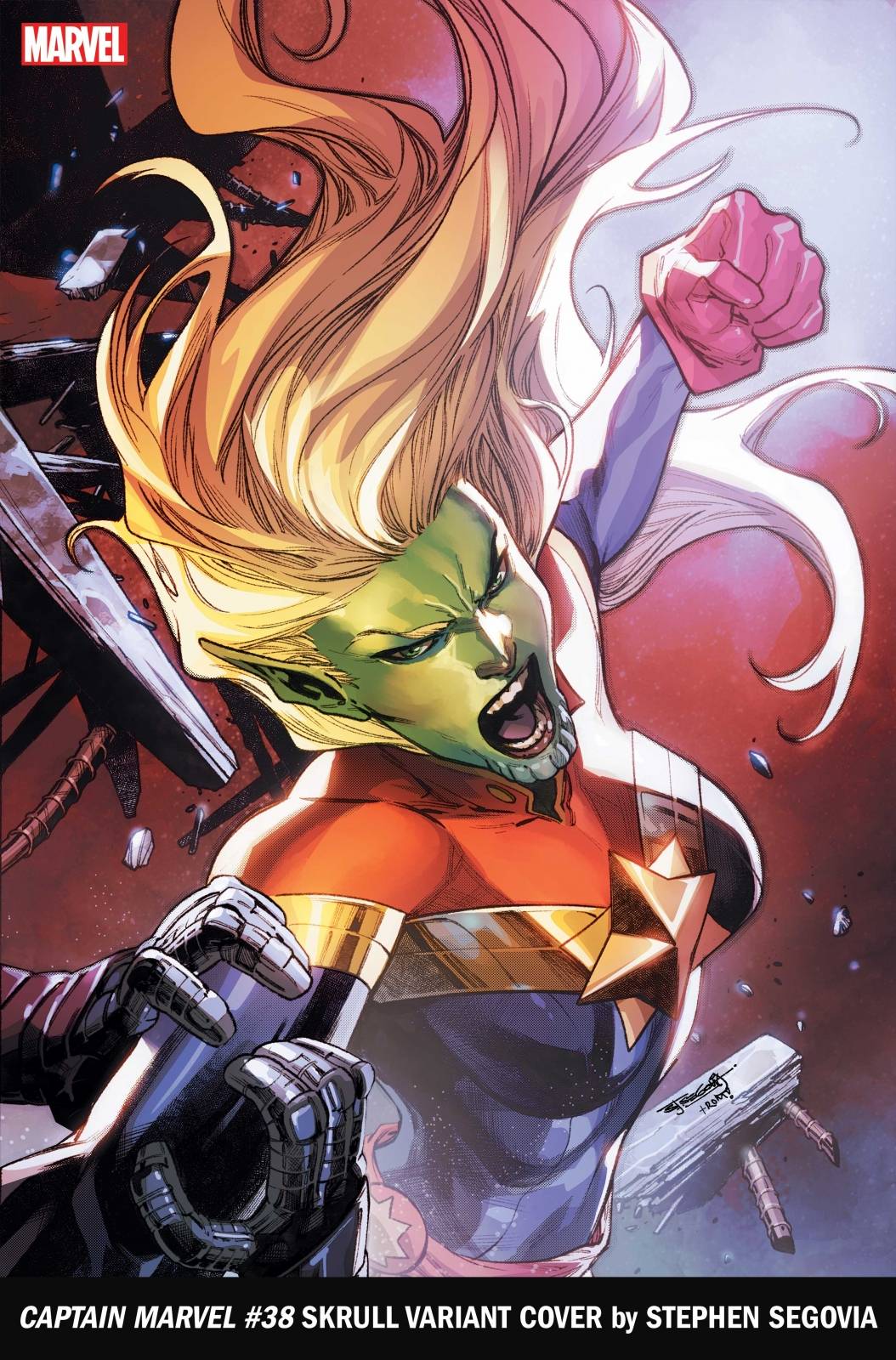 CAPTAIN MARVEL #38 SKRULL VARIANT COVER by STEPHEN SEGOVIA