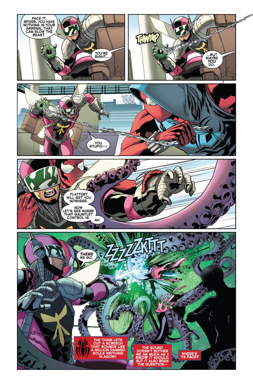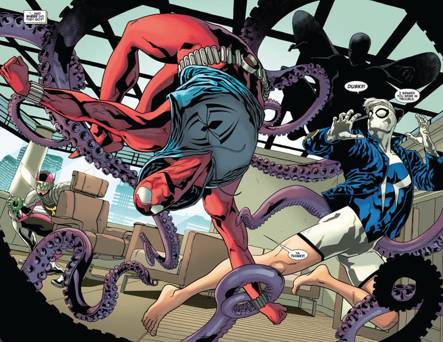 Marvel launches the new story arc ‘The Slingers Return’ in Ben Reilly: The Scarlet Spider #10 this coming Wednesday, and you can take a look at a preview of the issue here…