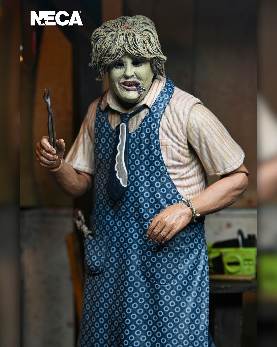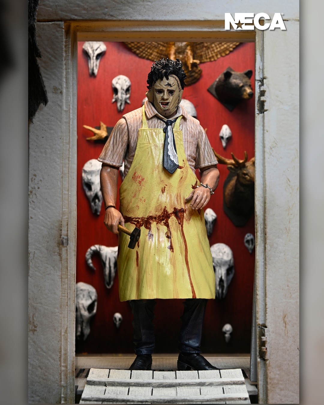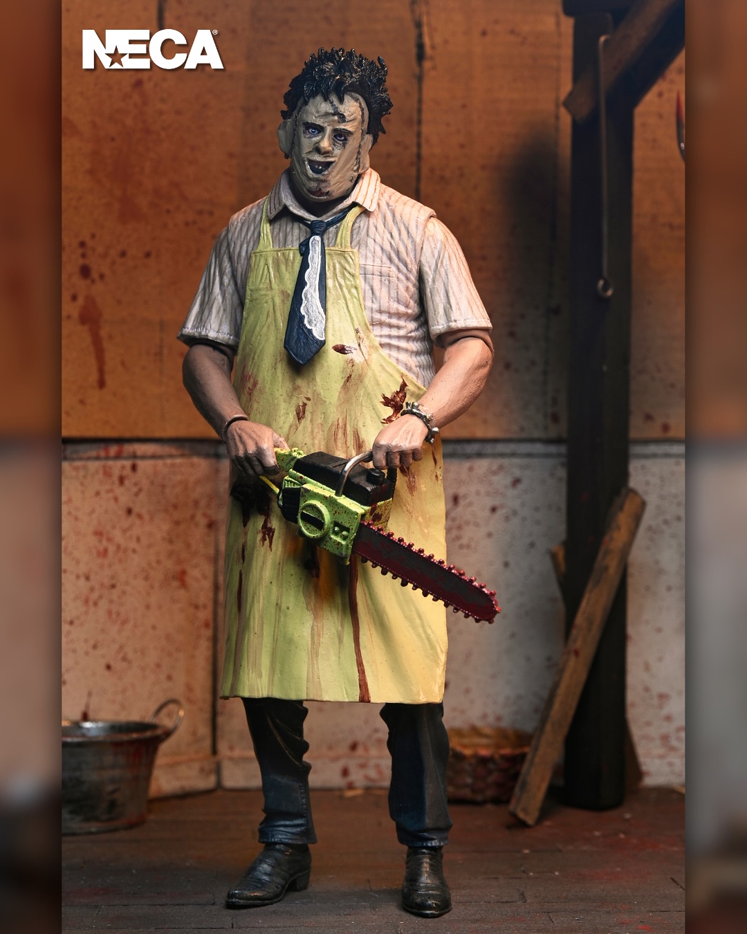 In celebration of The Texas Chainsaw Massacre’s 50th anniversary, Leatherface returns to NECA’s Ultimates line, fully updated and reworked from the ground up! The 1974 masterpiece film directed by Tobe Hooper changed horror cinema forever, and now you can own a piece of its history! This 7-inch scale, fully articulated Leatherface action figure features interchangeable aprons for two distinct looks, three interchangeable heads and hands, bloody chainsaw, long hammer, short hammer, tongs, knife, cleaver, meat hook, spoon, and bracelet. Comes in collector-friendly window box packaging with opening front flap. Bring this new Leatherface home to join your family today!