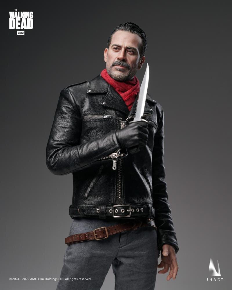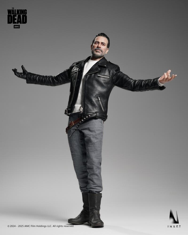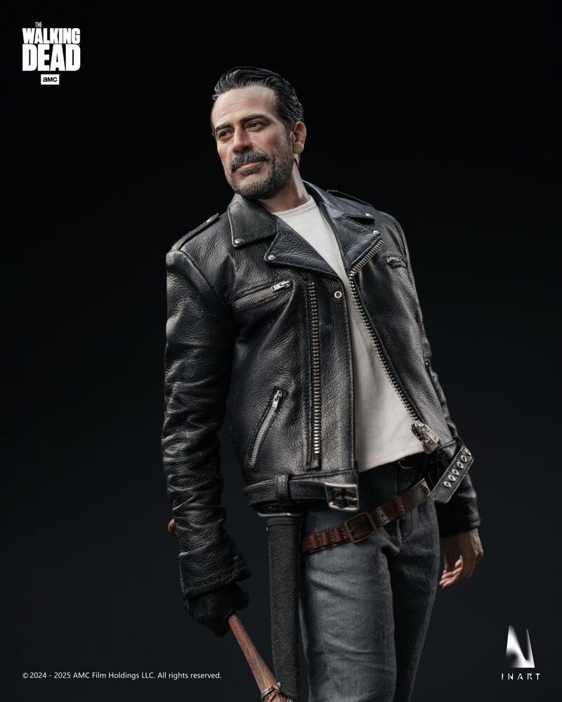 This INART Sixth Scale Negan Smith action figure is officially licensed by AMC. The figure features movable eye technology for realistic expressions and faithfully captures Negan’s tall, streamlined physique. His signature leather jacket includes a special metal zipper pull, precisely detailed to replicate the on-screen texture and pattern. Complete with his iconic baseball bat, Lucille, this figure is a stunning, screen-accurate centerpiece—a must-have for any fan or collector looking to bring the world of The Walking Dead to life in their display.
