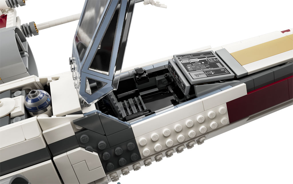 - Authentic details – Turn the dial on top of the X-wing to adjust the wings for flight and attack modes. The set also features a space for R2-D2 behind the cockpit