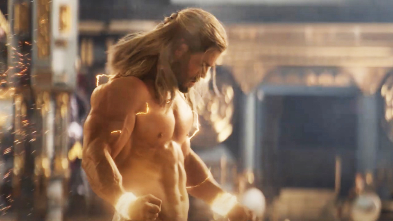 Based on the trailer, it seems a safe bet that the partial nudity will be the scene where Russell Crowe’s Zeus flicks away a captive Thor’s clothing much to the delight of onlookers.