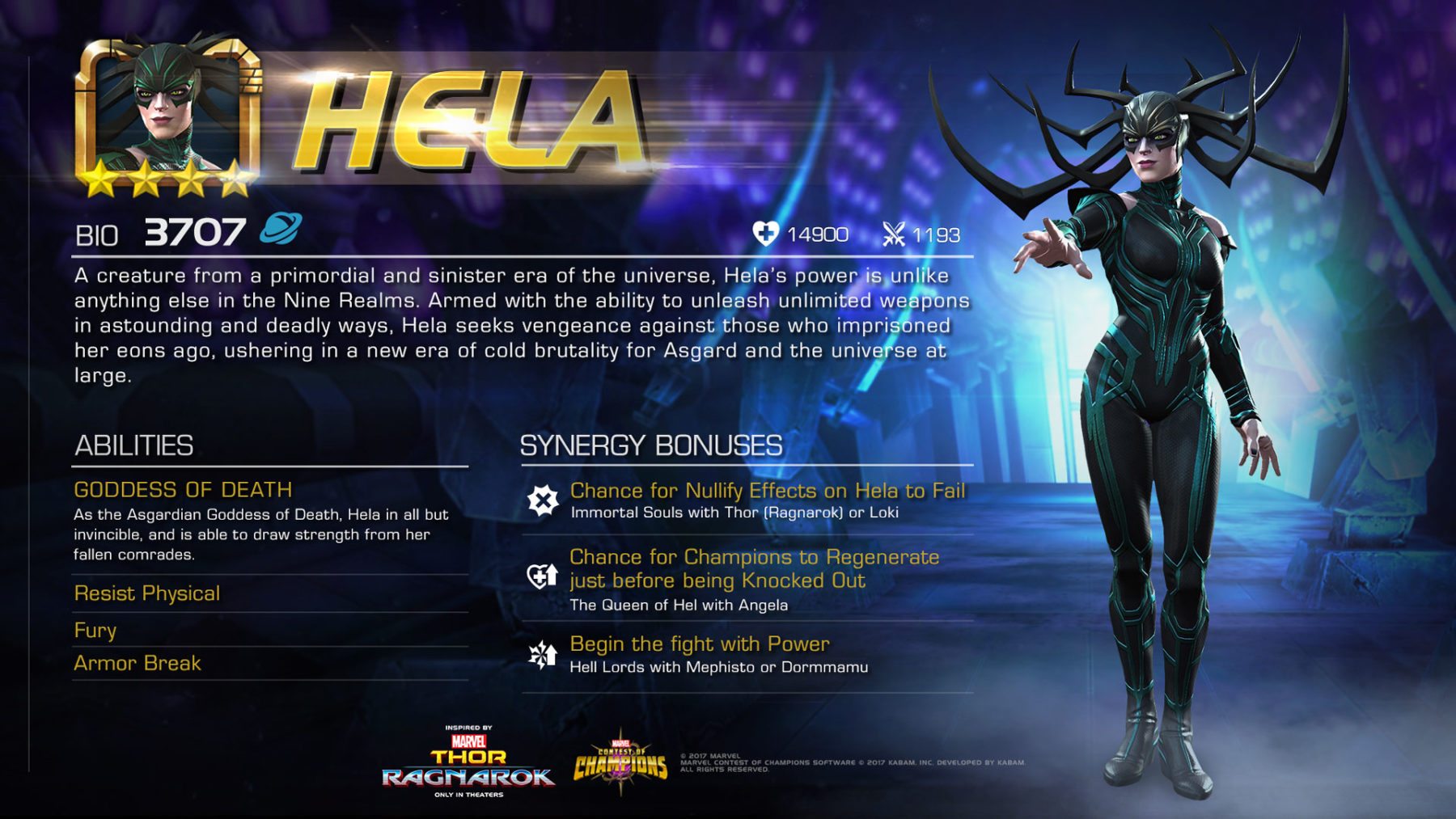 Kabam has announced that Thor: Ragnarok’s villain Hela is set to arrive in its popular fighting game Marvel Contest of Champions this Thursday.