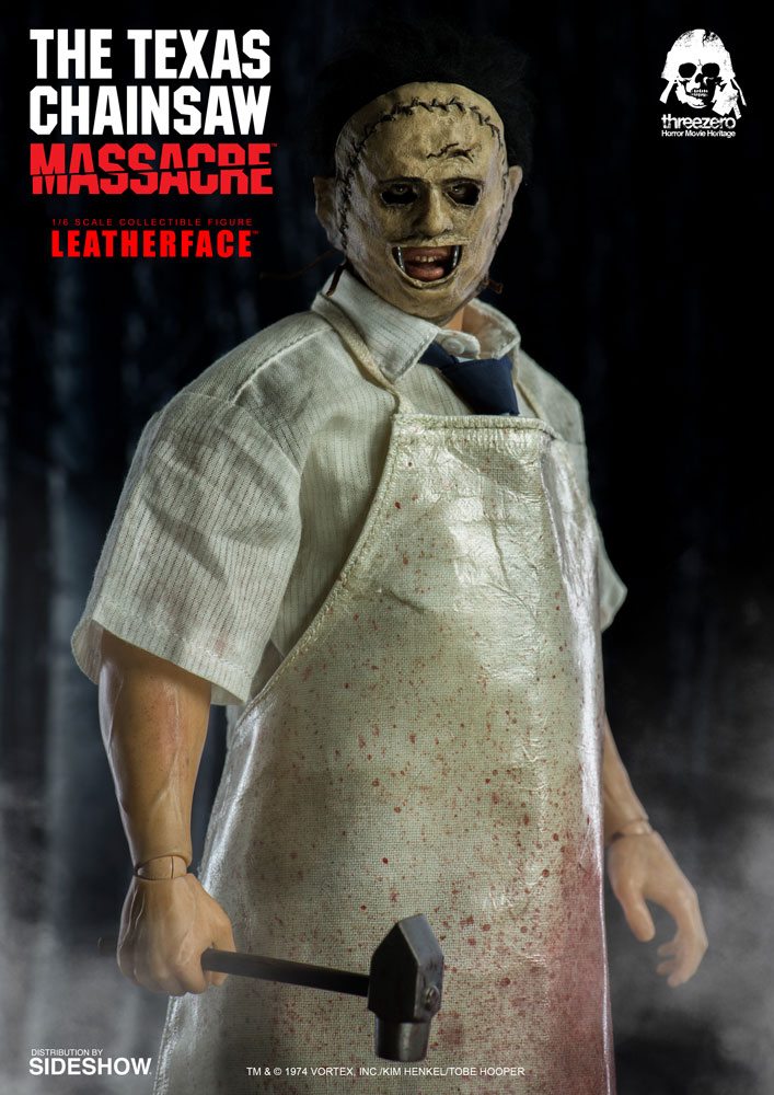 Sideshow Collectibles and Threezero are thrilled to introduce the sixth scale Leatherface collectible figure from The Texas Chainsaw Massacre. Standing 12.6 inches tall, this figure features a lifelike accuracy to the character in the horror film and features fabric hair implantation, an authentic gruesomely sculpted mask, and weapons including a chainsaw, hammer, and hook.