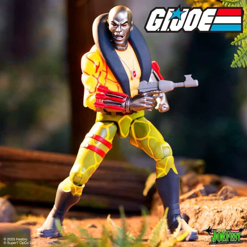 Quick…get G.I. Joe! Super7’s ULTIMATES! Python Patrol Destro is ready to strike. This 7” scale, highly articulated figure features metallic details and is inspired by vintage Python Patrol action figures. A collector-friendly window box, with a flourishing jungle scene, creates a sense of adventure, as danger lurks around every corner. This figure comes with interchangeable heads, hands, and weapons, so you can switch up Destro’s look and add to the chaos.