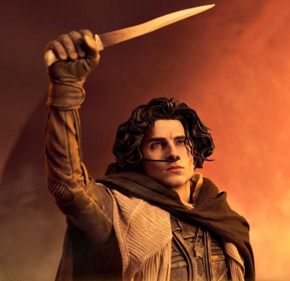 This 1:3 scale Paul Atreides collectible statue captures him as he faces his destiny in Part Two. His pose, lifting the crysknife high, is inspired by the key visual, embodying his resolute spirit to avenge, to protect his loved ones, and to fulfill his role.