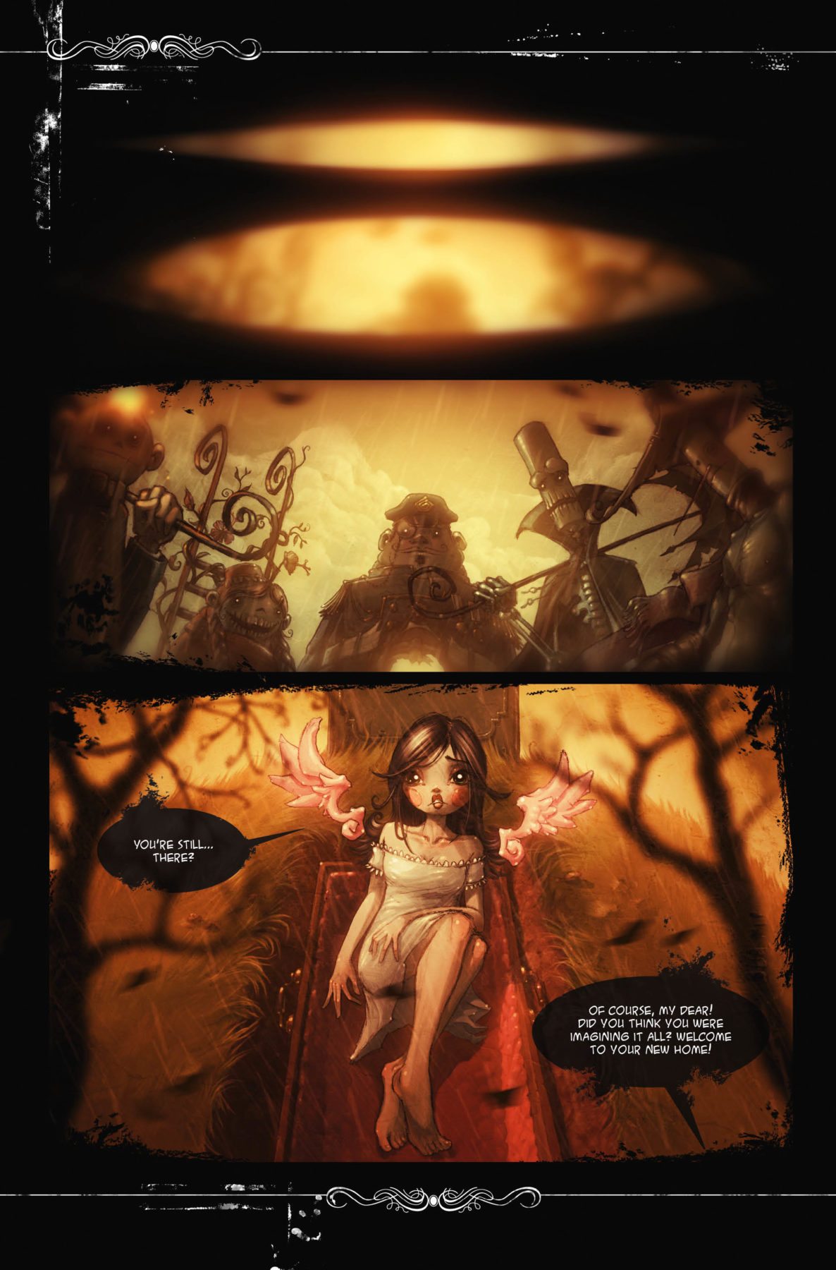 “Alisik started as a short animation I did during my time at Disney – something different, a bit darker, but not horror. Hubertus liked it so much, that we wanted to make a comic series out of it,” said Alisik co-creator and artist Helge Vogt, “Alisik became a part of my life. It’s the best I’ve done so far, and I’m thrilled that it’s coming out English!”