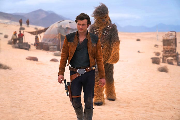 Solo: A Star Wars Story features Alden Ehrenreich (Hail, Caesar!) as the famous smuggler, Donald Glover (Atlanta) as Lando Calrissian, Woody Harrelson (War for the Planet of the Apes) as Tobias Beckett, Joonas Suotamo as Chewbacca, Phoebe Waller-Bridge (Fleabag) as L3-37, Emilia Clarke (Game of Thrones) as Qi’Ra, Thandie Newton (Westworld) as Val, Ian Kenny (Sing Street) as Rebolt, Harley Durst (Wonder Woman) as Moloch, Jon Favreau (Spider-Man: Homecoming) as Rio Durant, Paul Bettany (Avengers: Infinity War) as Dryden Vos and Warwick Davis (Star Wars: Episode VI – Return of the Jedi) as Weazel.