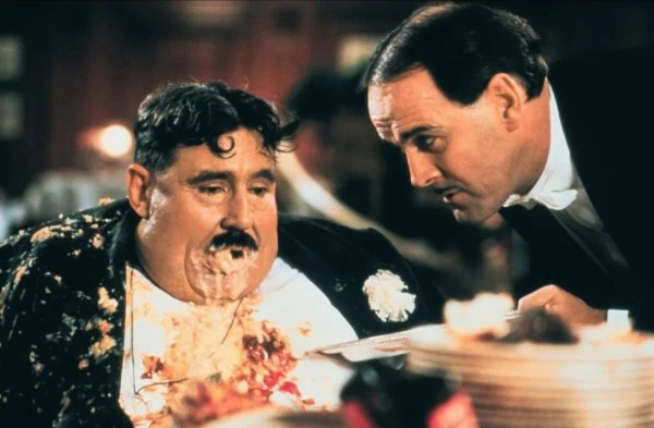 The scene in question revolves around a grossly obese customer named Mr. Creosote, played by Terry Jones himself, who arrives at the table to vomit in the bucket first before proceeding to stuff an insane amount of food. If you think the repeated projectile vomit scene is visually repulsive, wait until you see the maître d’ (John Cleese) persuading him to take a bite of a “wafer-thin mint”. It may seem harmless, but what happens next is an epic proportion of grotesque imagery.