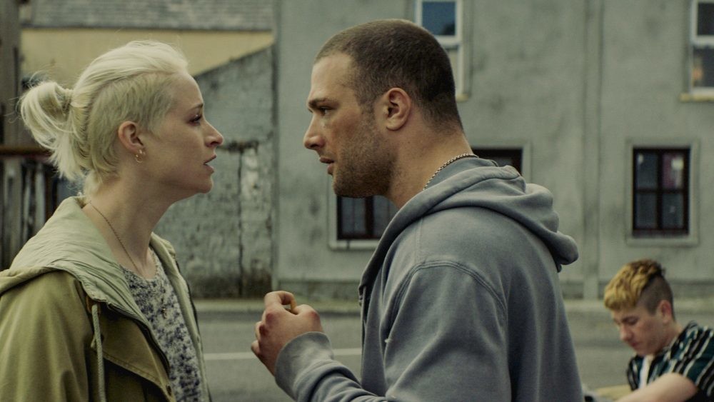 Algar proves to be a strong addition to the film as Ursula, holding her own against Jarvis’ presence. Unlike Arm, Ursula has a lot to say and Algar emotes everything she’s feeling in a clear and captivating manner. From the way she looks after their son to her attempts at reasoning with Arm over his dangerous lifestyle, she makes an impact of her own. Keoghan takes on a fairly different role for him with Dympna, a young punk in the Devers family who wants to emulate his uncles and late father and be seen as a tough guy. He makes a memorable impression through violent streak and subtle manipulations over Arm, but also shows there’s more depth to him than he lets on. Another outstanding piece to the cast is the young Kiljan Tyr Moroney as Arm and Ursula’s son Jack. Even though he has no typical lines, it is notable for a child his age to display the difficulties Jack has in communicating and his uneasiness around Arm and others.