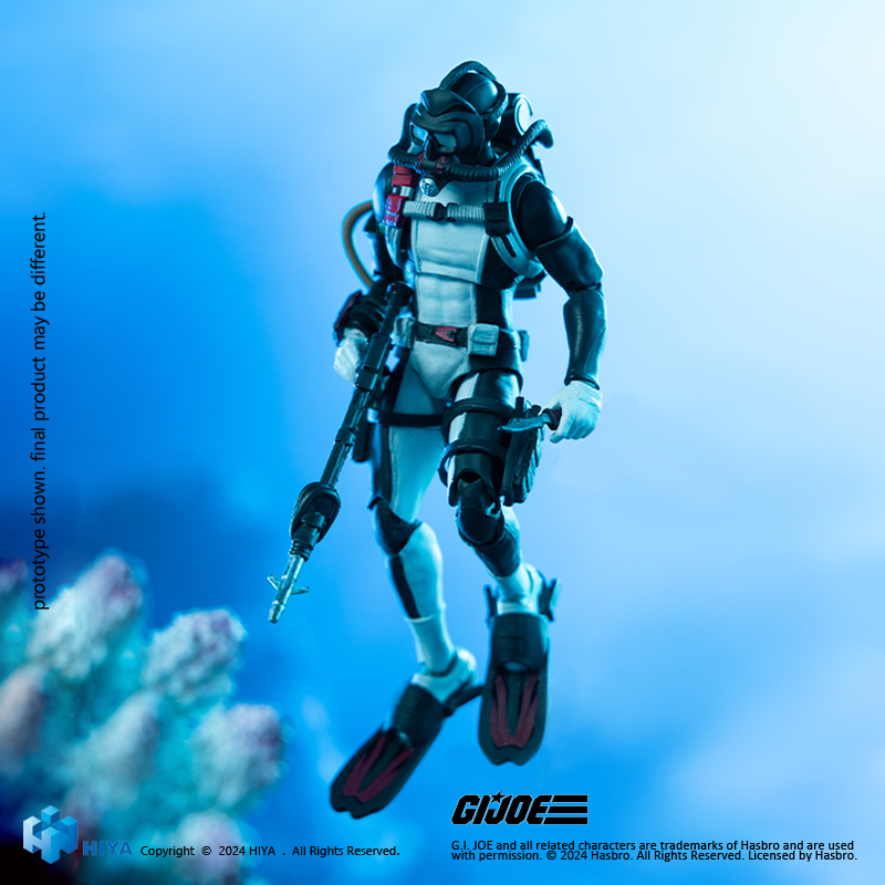 The figure comes with a variety of weapons, including 1x spear gun, 1x short barreled rifle, 1x tactical knife and more. Each accessory is intricately detailed, even at the 1/18 scale. The figure is equipped with detachable scuba backpack can be connected to breathing mask and 2x swim fins, offering greater flexibility. Features multiple movable joints throughout the body, supporting a wide range of poses, and comes with 2x interchangeable hands for displaying different stances.
