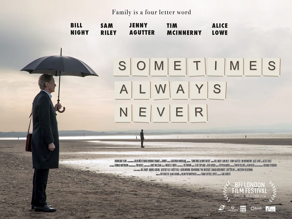 Ahead of its premiere at the BFI London Film Festival, a trailer, poster and images have arrived online for the upcoming comedy drama Sometimes Always Never which is directed by Carl Hunter and stars Bill Nighy, Sam Riley, Jenny Agutter, Tim McInnerny, and Alice Lowe.