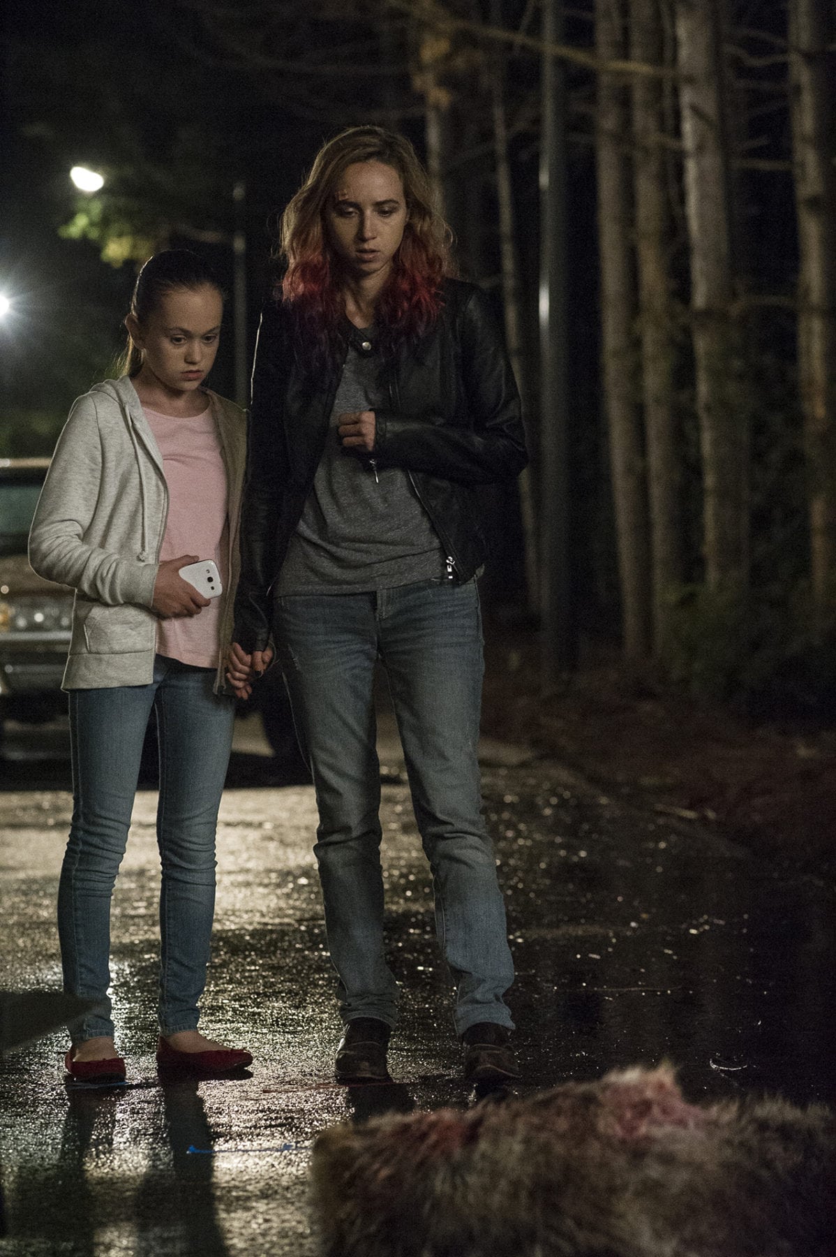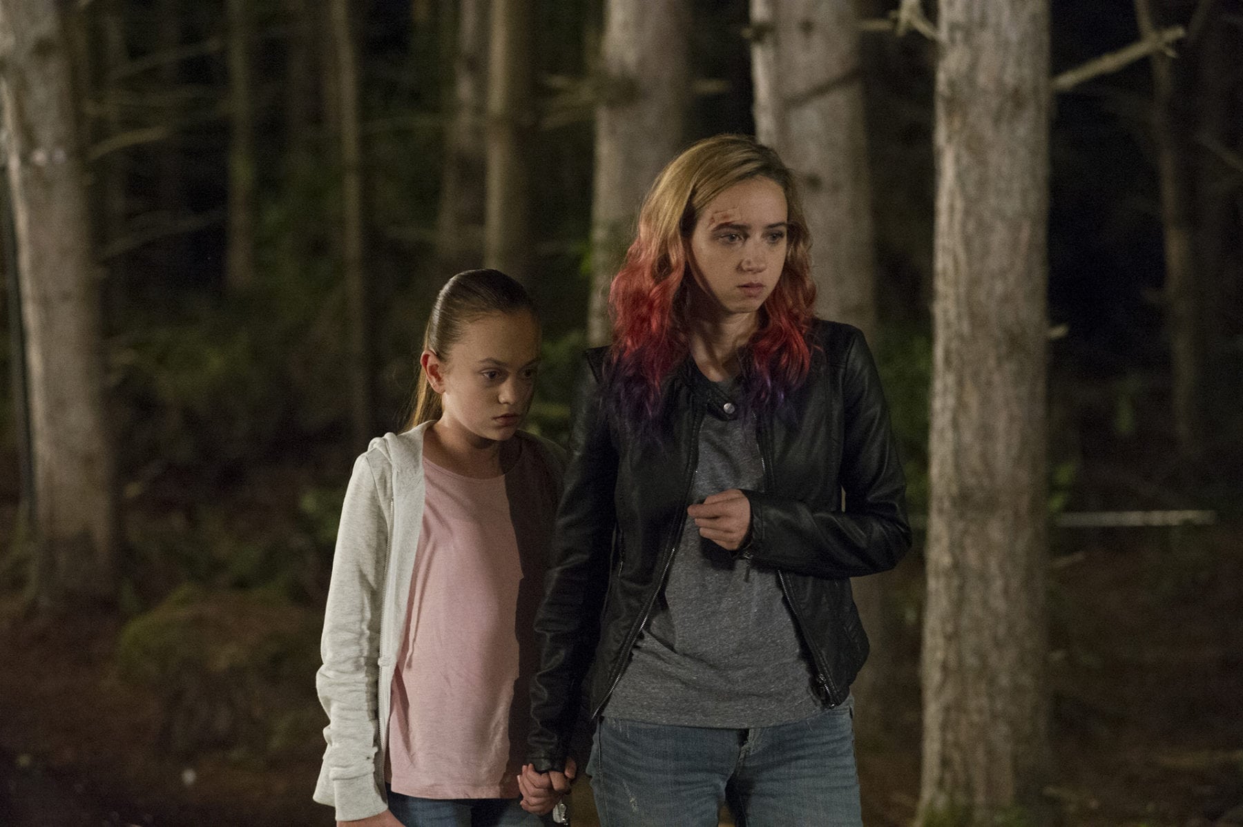 Kathy (Zoe Kazan) and her 10-year-old daughter Lizzy (Ella Ballentine) are trapped and tormented in a pitch-black forest by a screeching creature. It is unlike anything they have heard before. Not human. Not animal. A monster.
