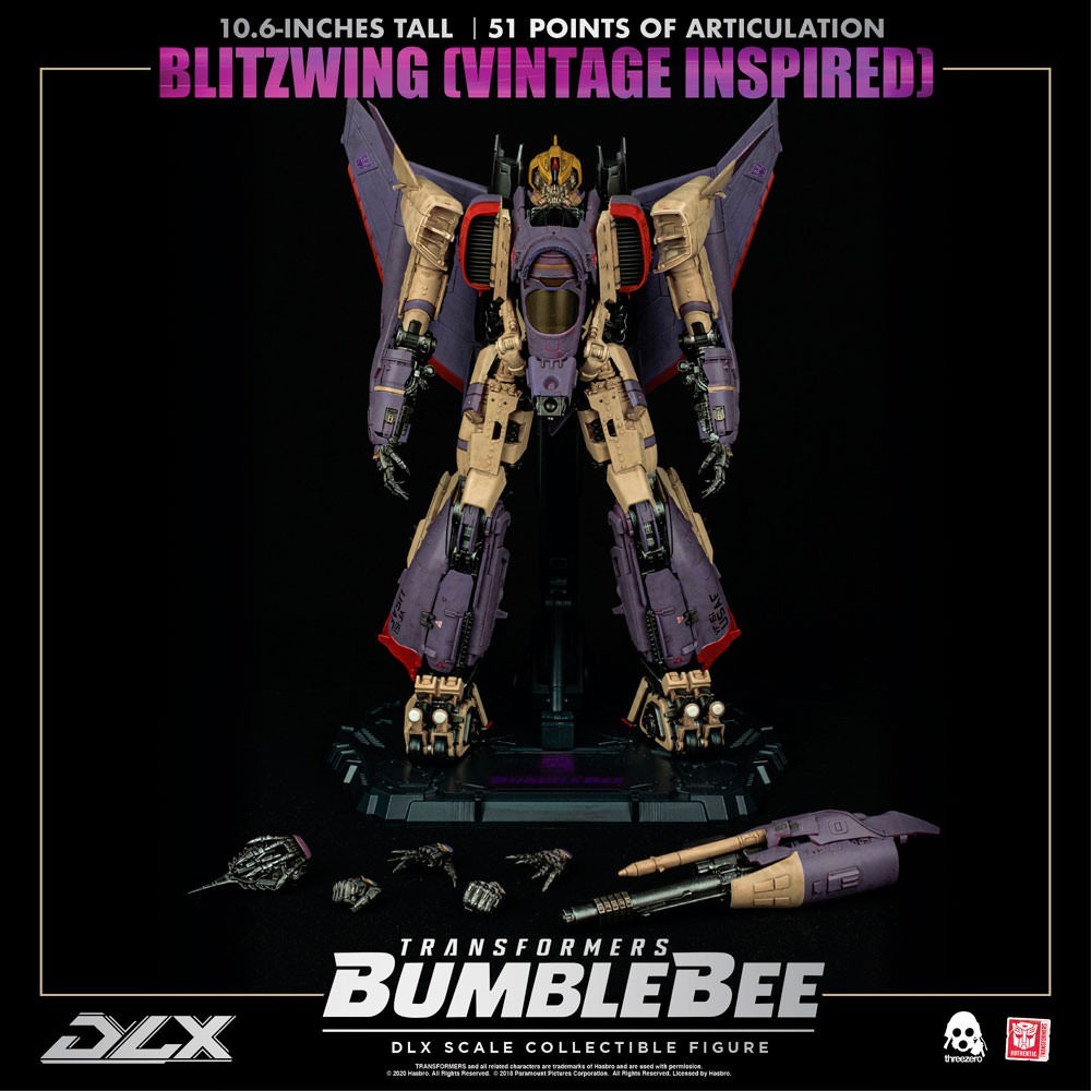 Hasbro and Threezero are proud to present this event exclusive and Hasbro Pulse exclusive Blitzwing (Vintage Inspired) Collectible Figure in the Transformers DLX Collectible Figure Series!