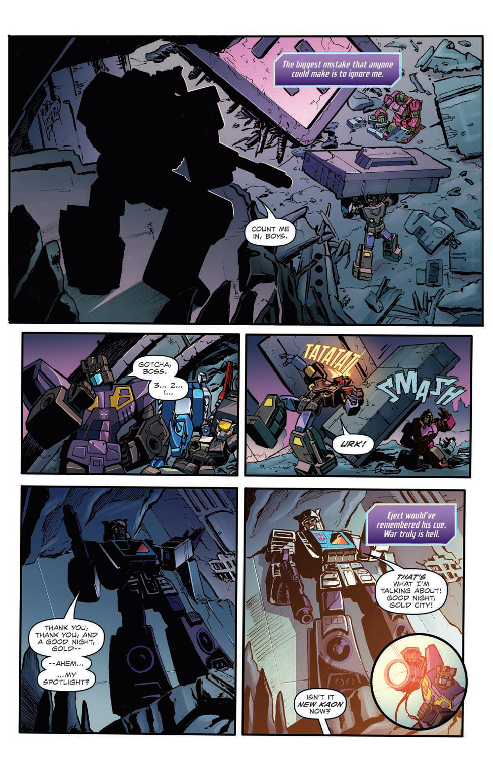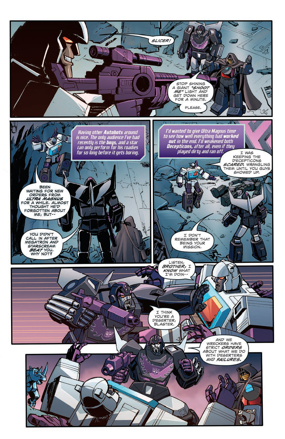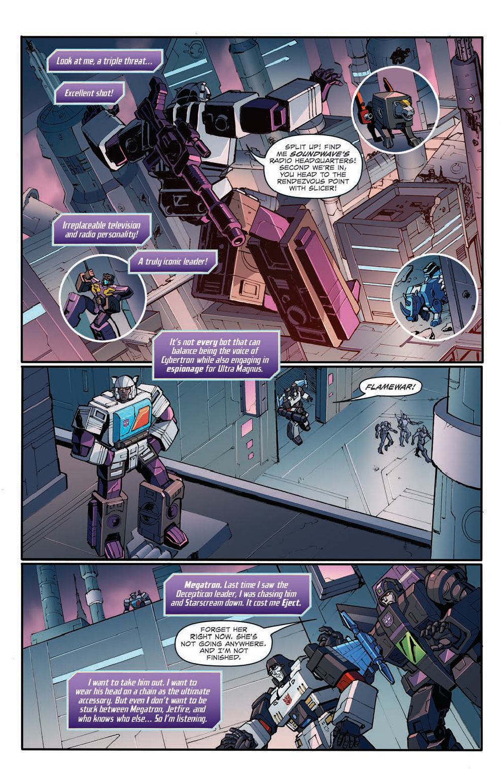 Wheeljack recruits Blaster to infiltrate Decepticon Radio, but Blaster will have to stop being the star of his own one-bot show in order to get back in the good graces of the Autobots.