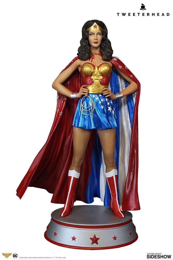 Sideshow and Tweeterhead are proud to announce the newest edition to the DC Maquettes – the Wonder Woman (Cape Variant)! Based on the likeness of Lynda Carter, known for her iconic portrayal of Wonder Woman.