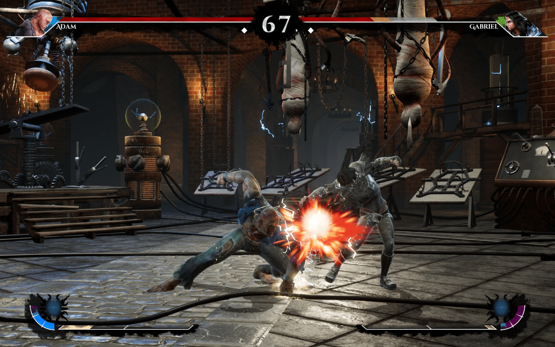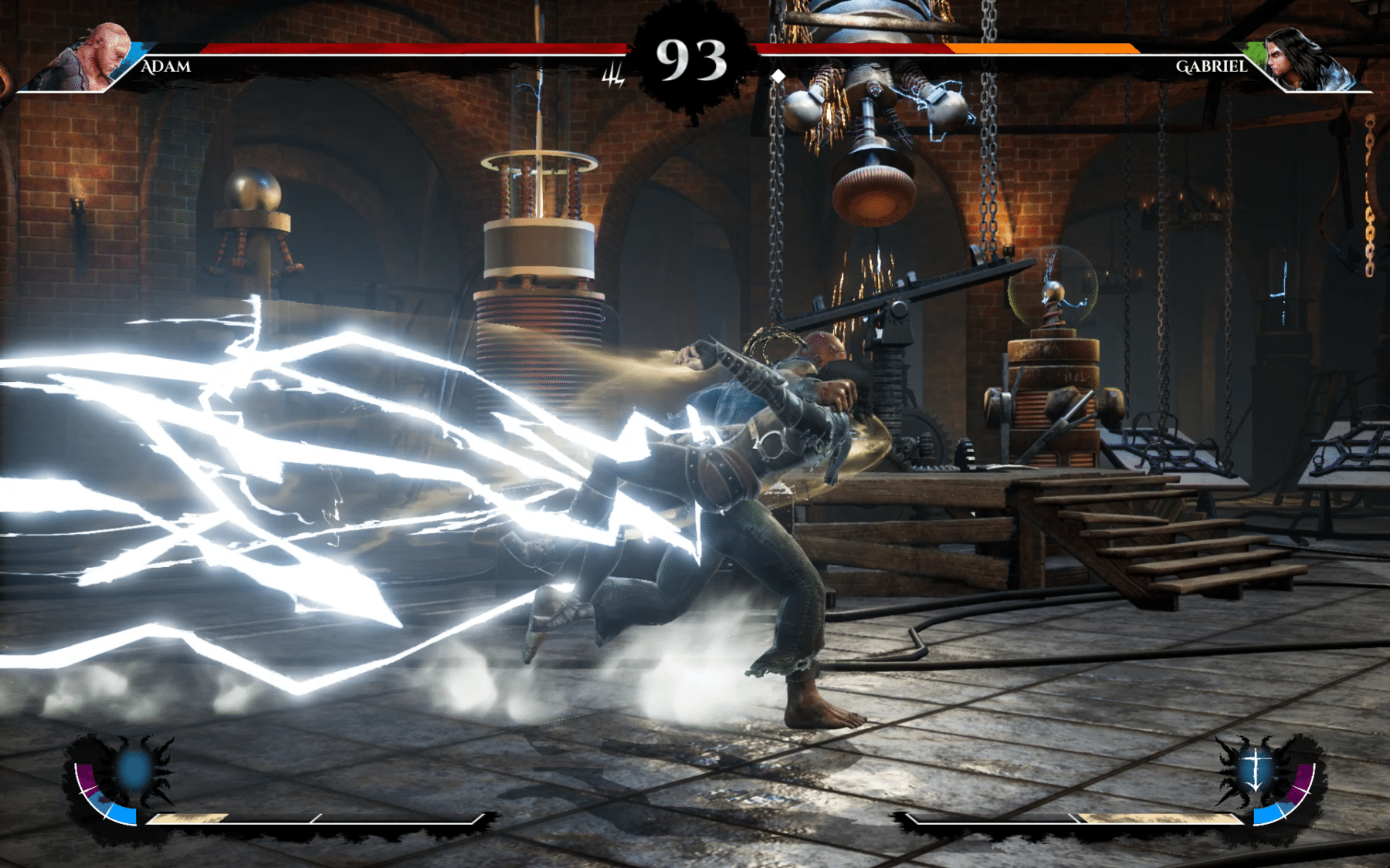 Adam is the result of a merging between science and the supernatural thanks to his father, Victor Frankenstein. Adam roams Europe in the hope to find someone who can bring his father back to life. In combat, Adam uses his immense strength and powerful lightning powers to knock out his opponents.