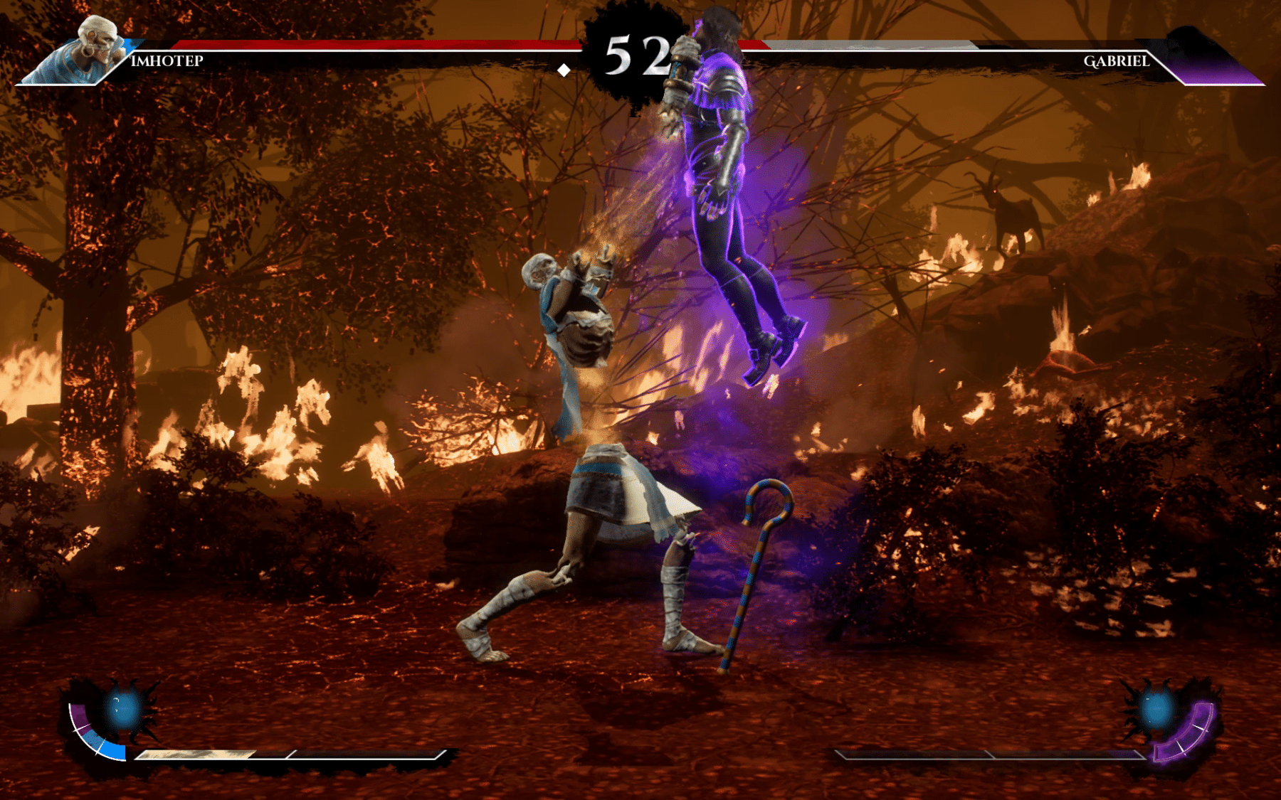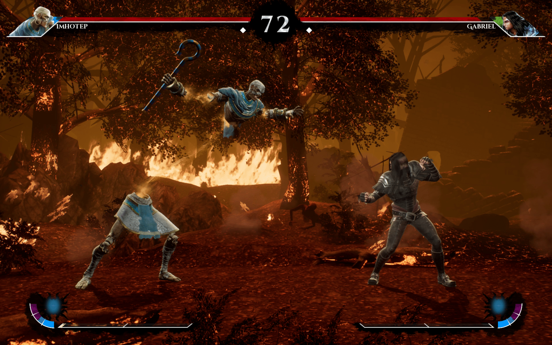 Imhotep is the mummified remains of a man who once claimed to be a god. When he was killed his limbs were scattered across the world but he finally managed to put his body back together over the millennia. When fighting, Imhotep can split off his limbs and magically let them attack their opponent independently of one another; he is also able to summon a powerful fireball of light and a horde of mummies.