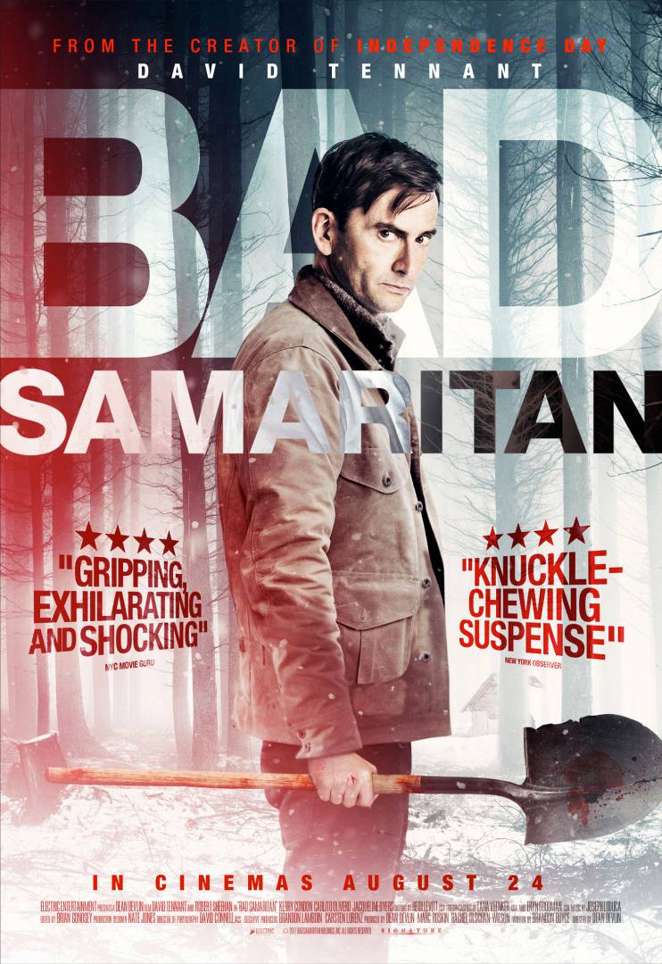 A UK poster and trailer have arrived online for director Dean Devlin’s thriller Bad Samaritan which stars David Tennant, Robert Sheehan, Carlito Olivero, Kerry Condon, and Jacqueline Byers; check them out here…