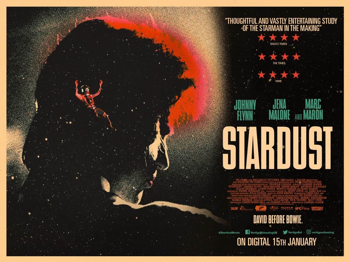 On what would have been the iconic musician’s 74th birthday, we have a UK poster and trailer for Stardust, the unauthorised biographical drama starring Johnny Flynn (Emma, Beast) as David Bowie; check them out here…