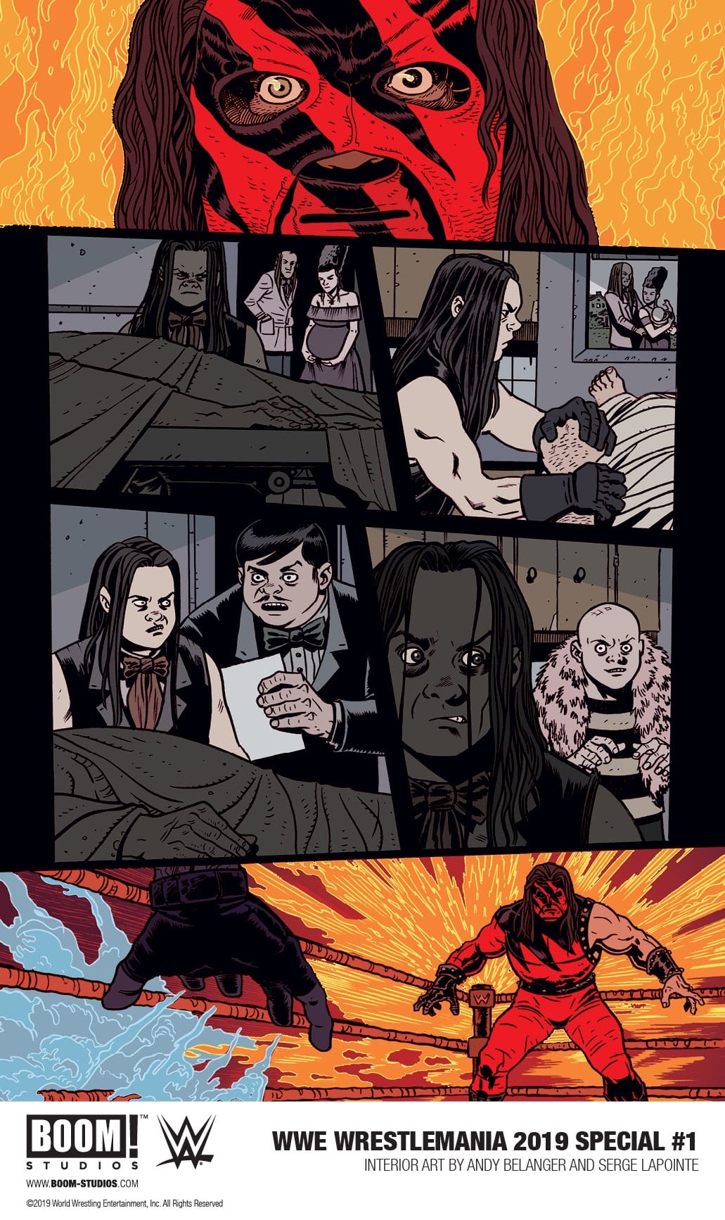 Boom! Studios has unveiled a first look preview of its upcoming oversized one-shot WWE WrestleMania 2019 Special, which features a look at the Undertaker vs. Kane showdown from WrestleMania 14. Take a look at the preview here…