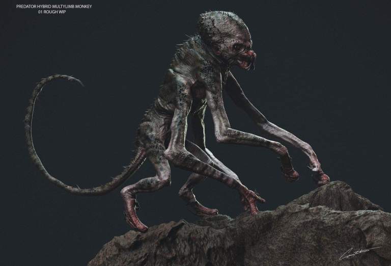 Unused concept art from The Predator shows human, monkey and lizard hybrids