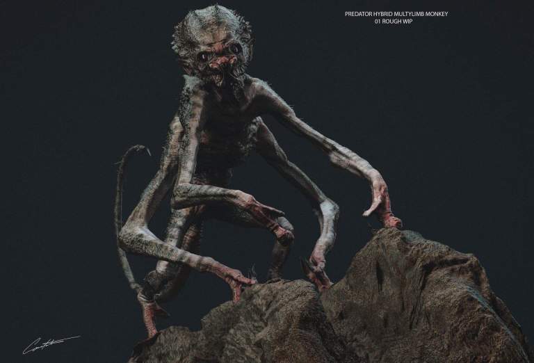 One of the original ideas for the movie would have seen the Upgrade Predator unleashing a number of hybrid-Predators from his ship, and now we’ve got a look at some unused concept art for several of said hybrids, which include a Predator-Human, a Predator-Monkey, and a Predator… Thing? You’re guess is as good a smine.