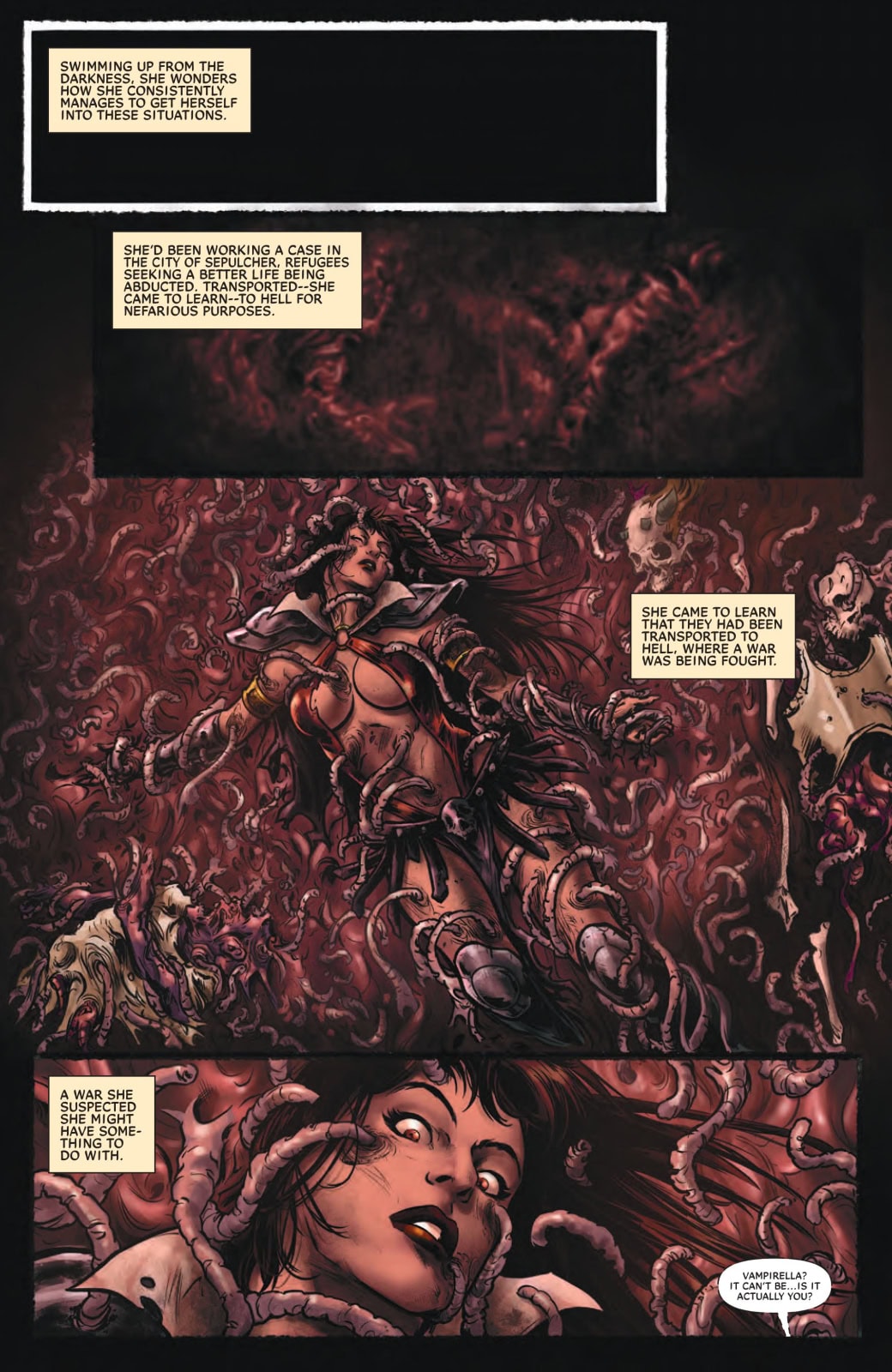 Life in Sepulcher City can seem like Hell on Earth, but it pales in comparison to the real thing something that Vampirella quickly discovers after she is transported against her will into the Inferno!