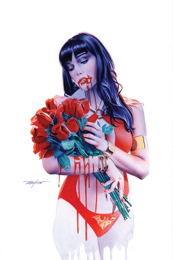 “It’s always a pleasure to see so many talented artists, such as Fay Dalton, Jenny Frison and Ben Oliver come in with their contributions every month portraying our favorite vampiress,” said Cathleen Heard, Dynamite Art Director. “Many of these pieces are so impressive that we know fans will appreciate them compiled and presented in different ways to truly celebrate this anniversary. Our production and design team always strives to put together books that reflect the prestige of our characters and properties.”